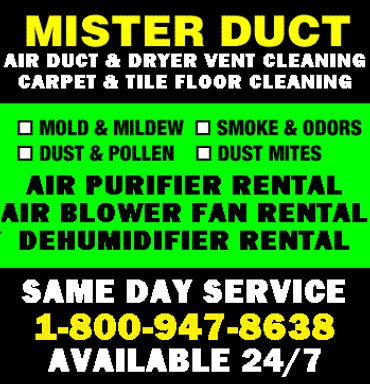 MISTER DUCT is a 24/7 emergency flood water clean up, sewage cleanup, mold clean up, mud cleanup, sludge clean up, gross filth clean up and disaster cleanup company. We offer wet carpet removal, wet insulation removal, wet drywall removal, wet ceiling removal and wet wood floor removal services.